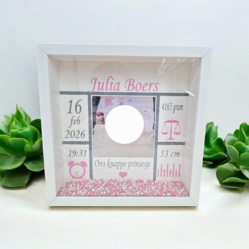• Geboortekader wit/roze met foto
